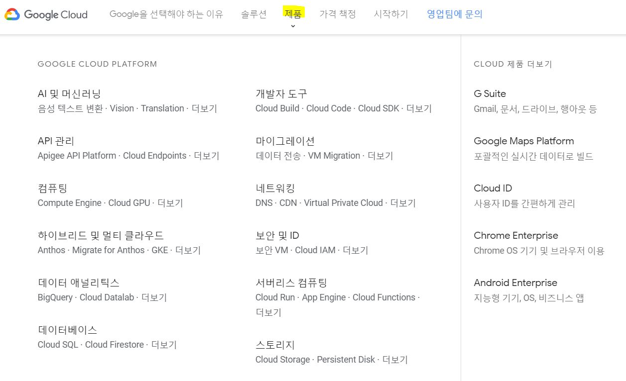 1) 구글 (https://cloud.google.com/?hl=ko)