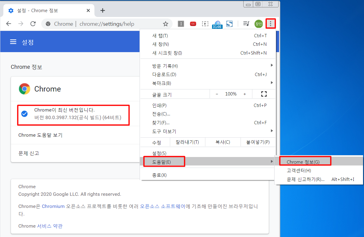 1) 크롬 버전을 확인 합니다.