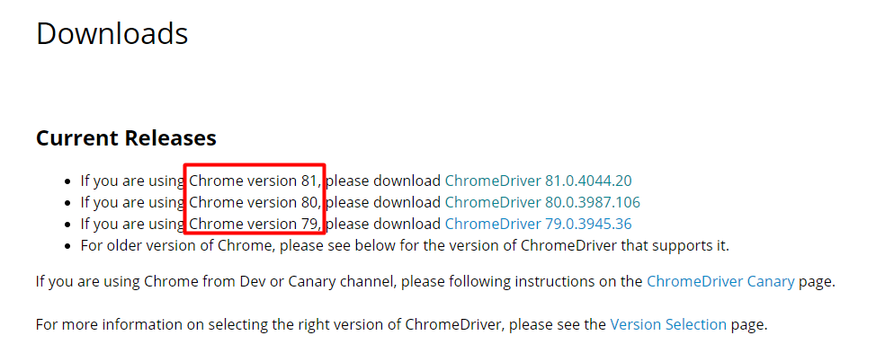 > 다운로드 URL : http://chromedriver.chromium.org/downloads