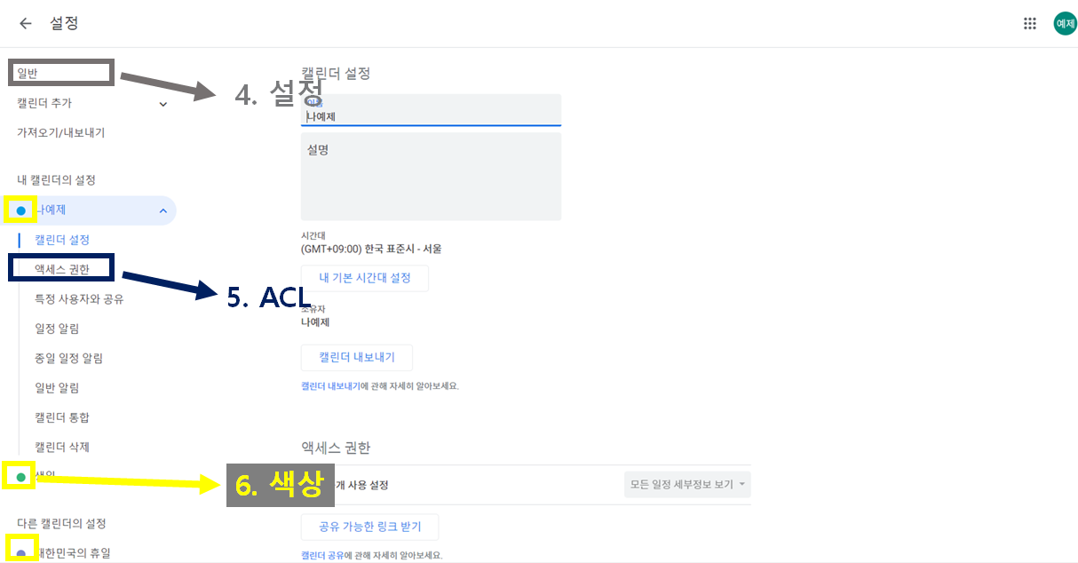 Step 2) 구글 캘린더 자원(resource)의 7가지 종류