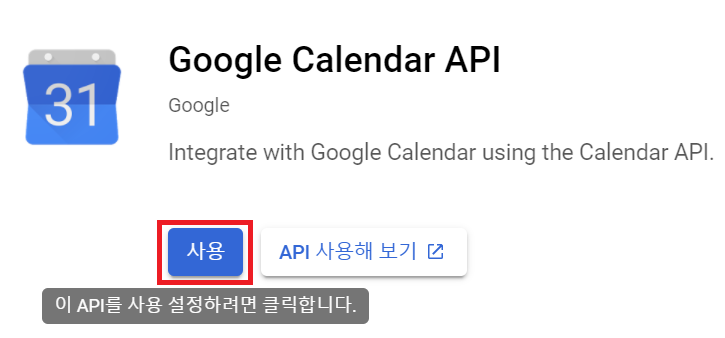 캘린더 API사용 enable