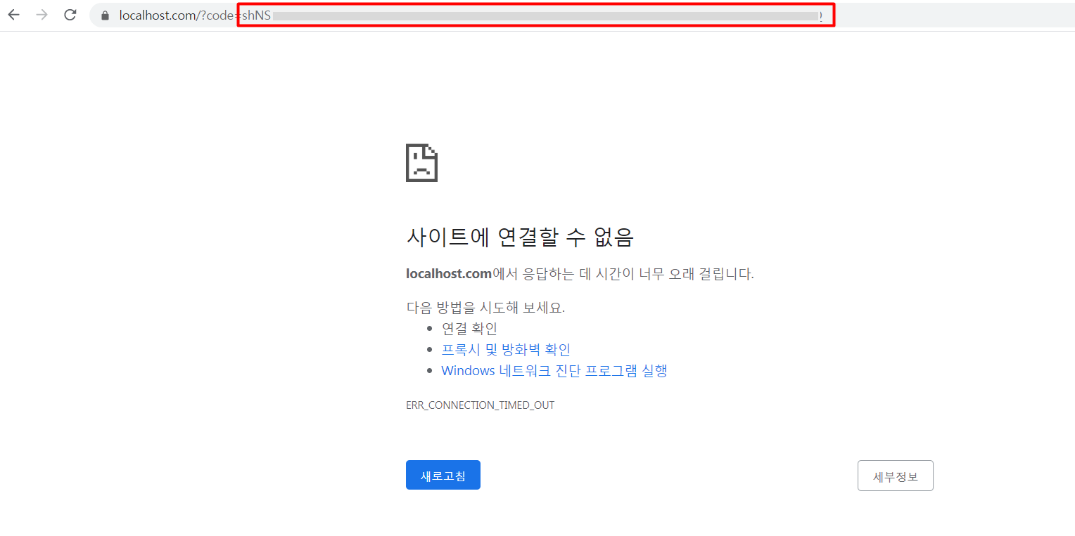 "code" : "<step2에서 발급받은 code를 입력하세요>"