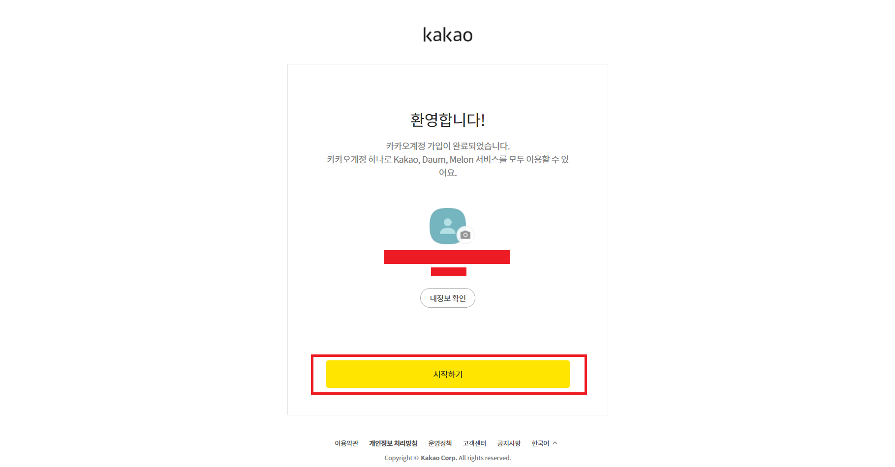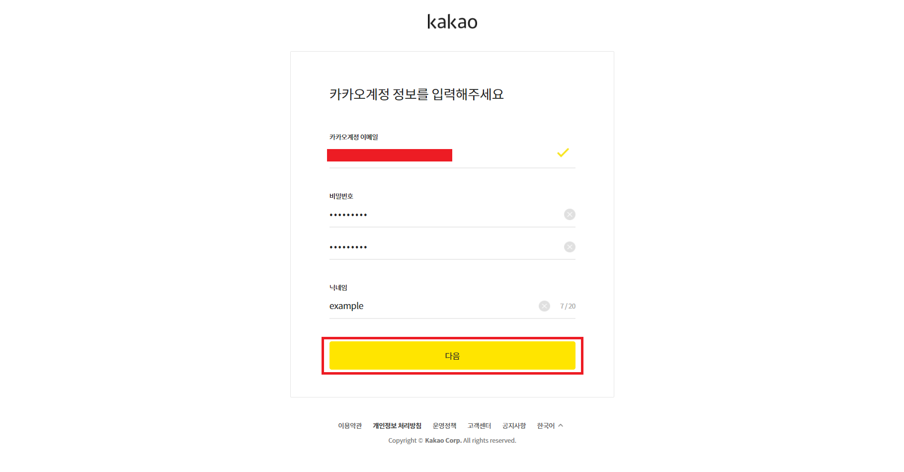 나머지 추가 정보 입력 후 [다음] 버튼 클릭 > 카카오 계정 가입 완료!