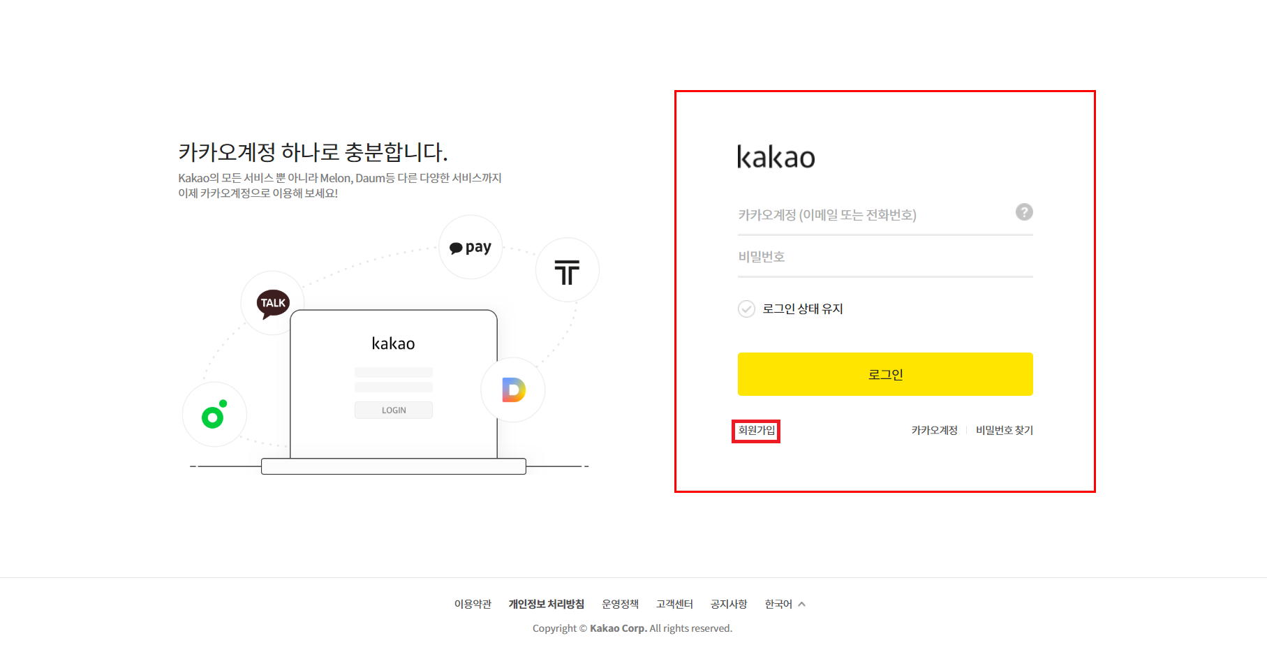 : 구글, 네이버, 다음 등 이메일 계정을 통해 가입