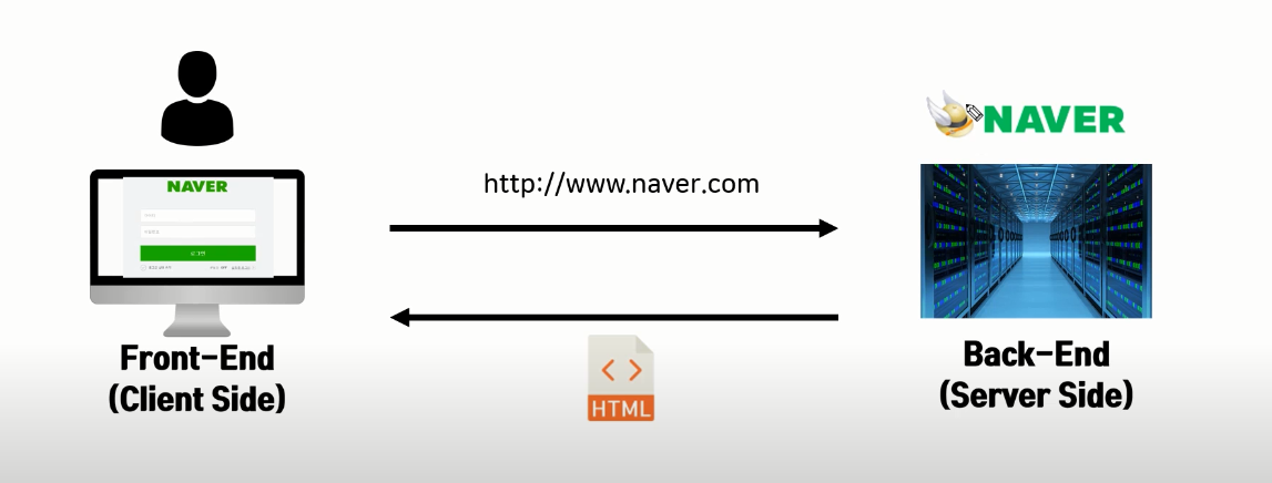 Step1) 우리가 인터넷을 할때 웹 브라우저를 실행하면 가장 먼저 웹 브라우저는 해당 주소의 홈페이지를 저장하고 있는 웹서버를 찾아가 홈페이지를 달라고 요청한다.