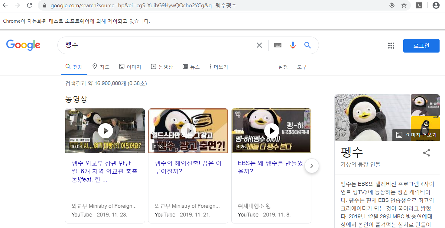 검색창에 "펭수"를 입력해 봅니다.