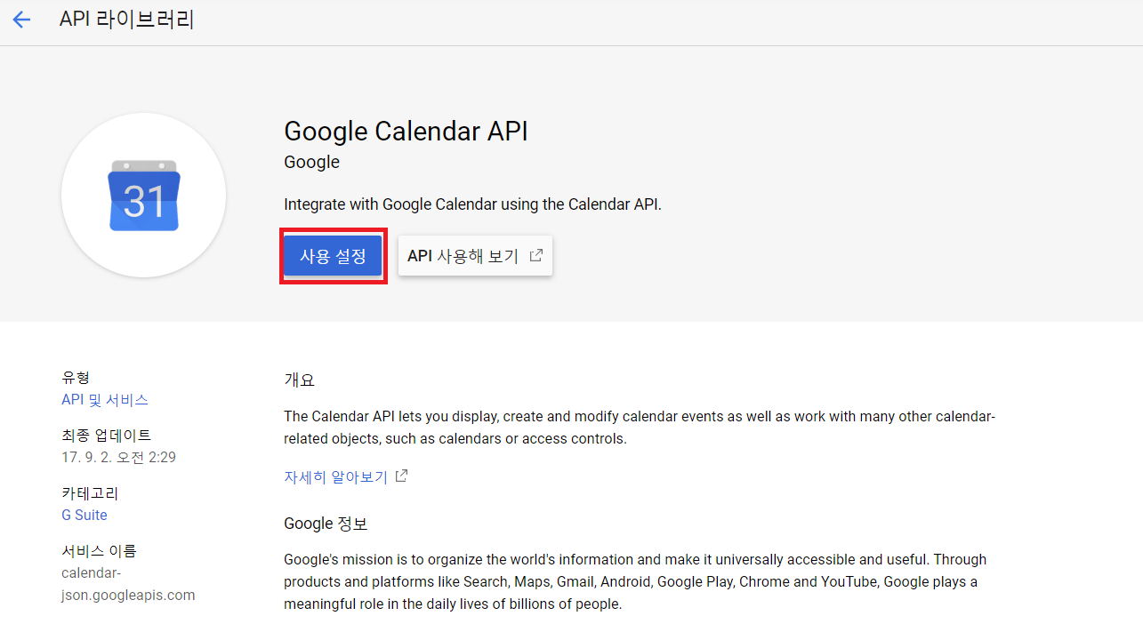 # 구글 캘린더 API 서비스 객체 생성