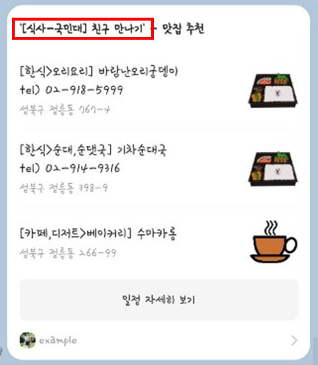 - 카테고리 : "식사" 로 설정되어 있다면, 맛집 검색이 필요하다고 인식합니다.