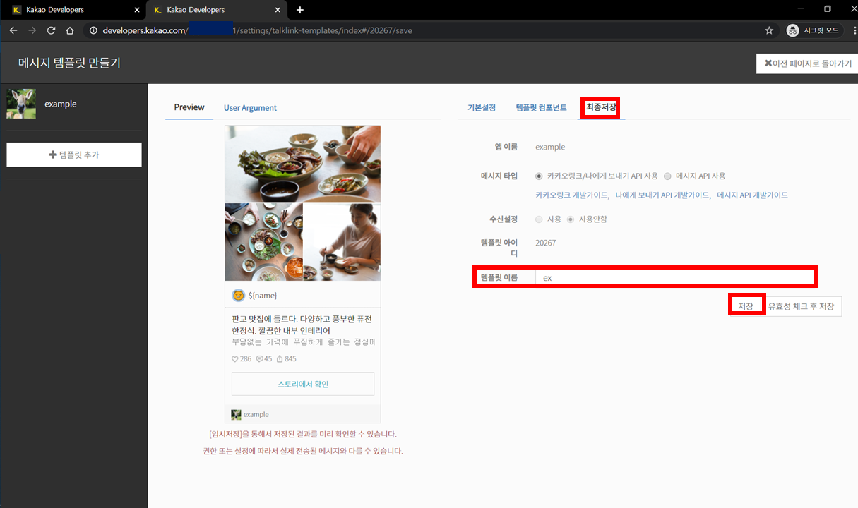 [최종 저장]을 눌러서 [템플릿 이름]을 정하시고 [저장] 클릭!