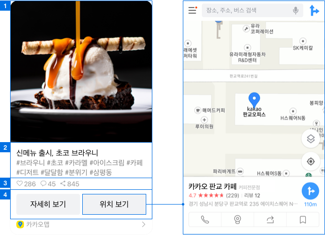 피드 템플릿은 하나의 콘텐츠와 소셜 정보, 최대 두 개의 버튼을 가질 수 있습니다.