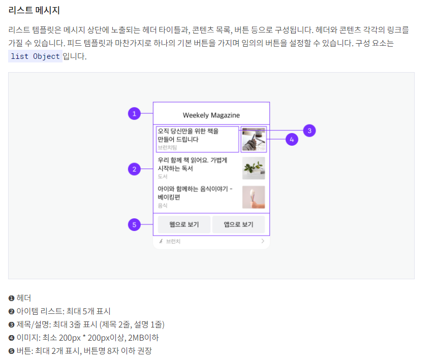 리스트 메시지는 리스트 템플릿에 맞춰서 내용을 구성해 주어야 합니다.