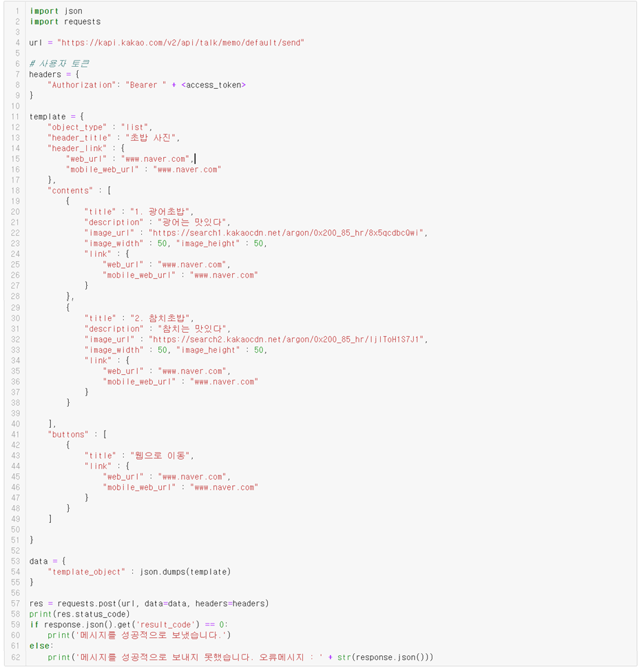 # 커스텀 템플릿 주소 : https://kapi.kakao.com/v2/api/talk/memo/send