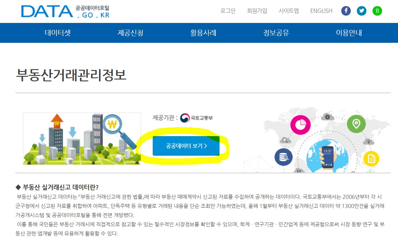 아파트매매 실거래 데이터 OpenAPI 신청하기 ※ OpenAPI 사용시 제공기관 연계서버와 일정시간을 주기로 동기화되며 동기화에 시간이 소요될 수 있다. |