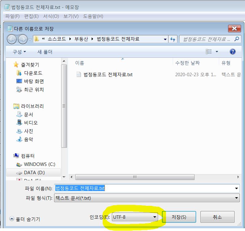 한글이 깨지는 경우가 있어 메모장으로 파일을 열어 "UTF-8" 포맷으로 변경하여 재저장 합니다.
