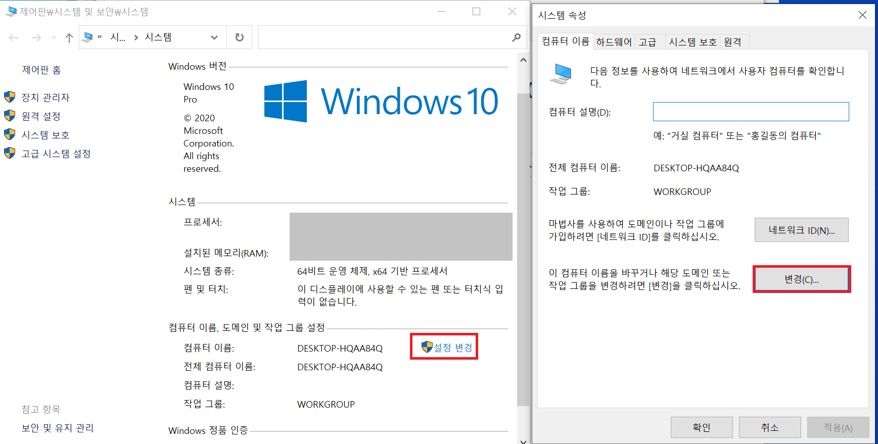 출력된 결과에 한글이 있다면, 컴퓨터 이름을 모두 영어로 변경할 것