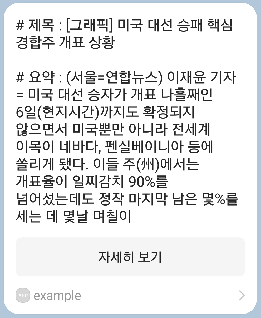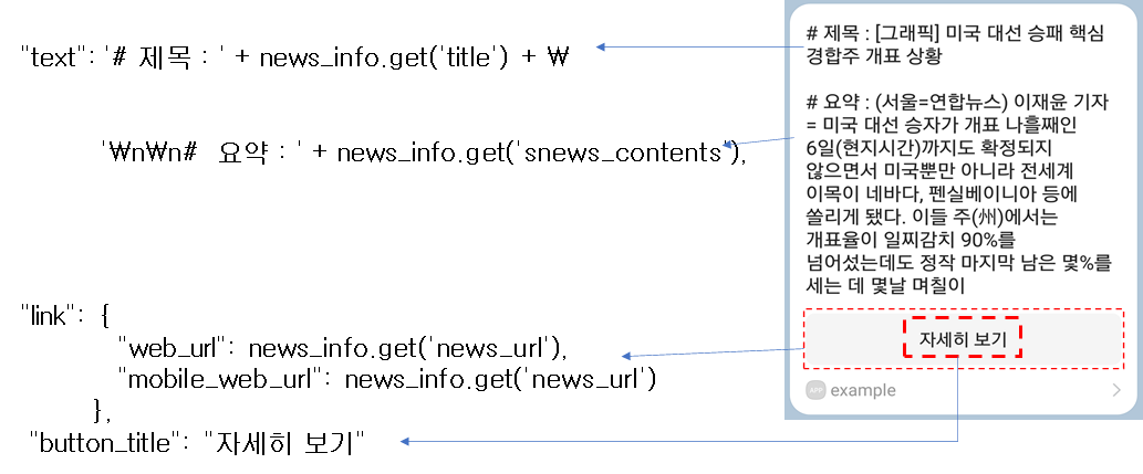 이렇게 요약된 뉴스 정보를 카카오 메시지로 보내봅시다.