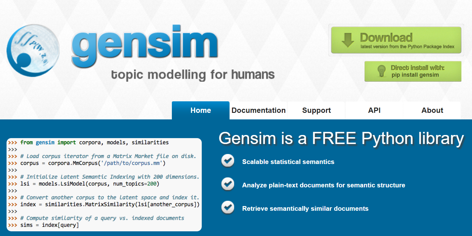 $ pip install gensim BeautifulSoup4 lxml requests