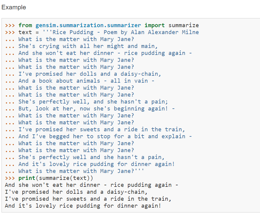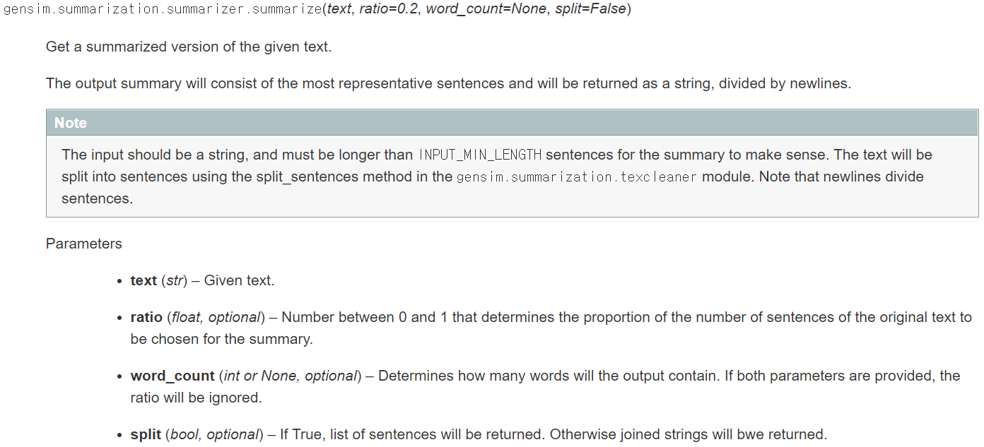 gensim은 뉴스를 요약하는 용도로 사용합니다.