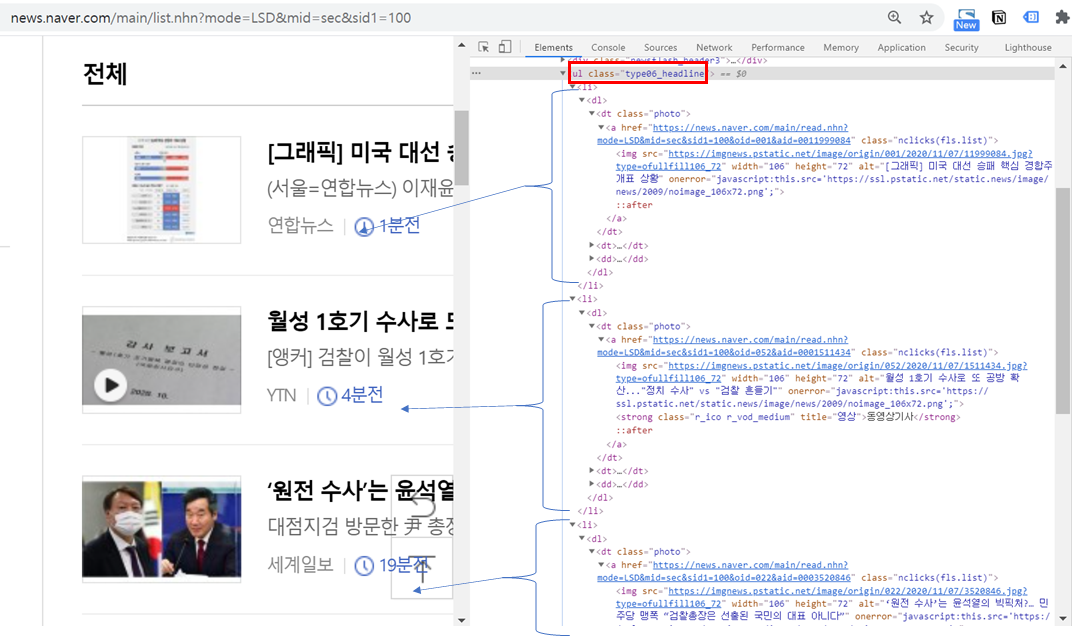 3-3) 네이버 뉴스 구조 이해하기 - 상위 3개의 뉴스 메타 정보 확인