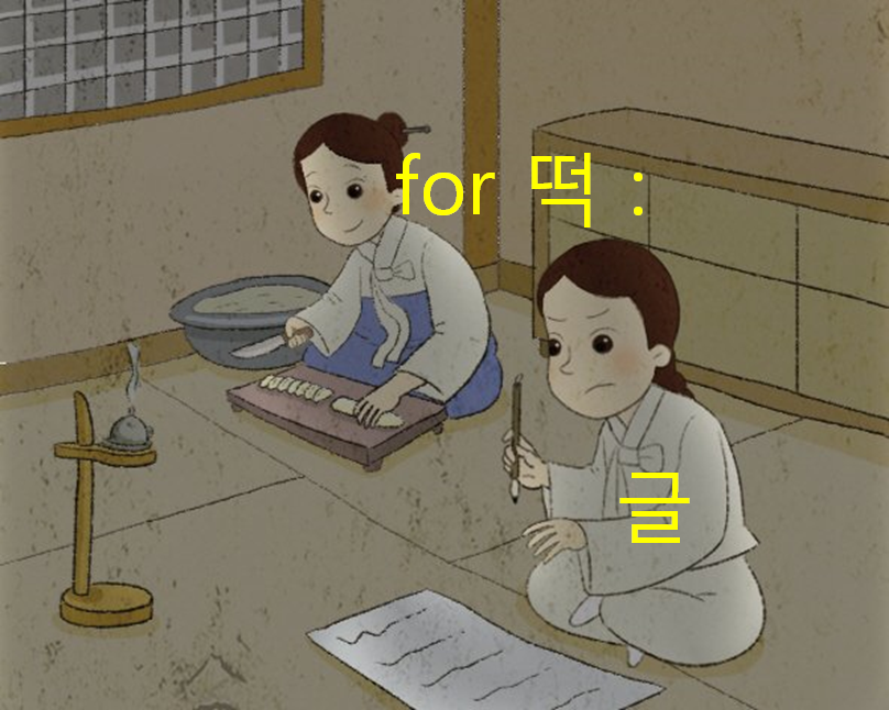 " 내가 떡을 써는 동안, 너는 글을 쓰거라~"