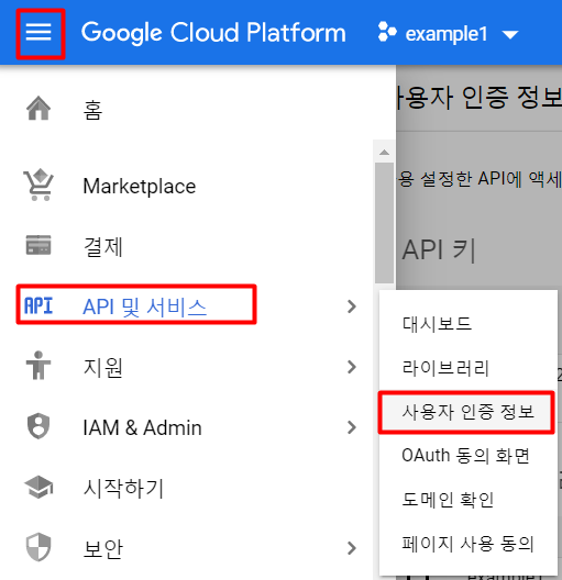 1) API 및 서비스 > 사용자 인증 정보