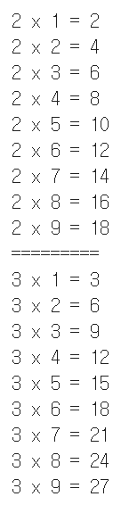print(dan, "x", num, "=", dan*num)