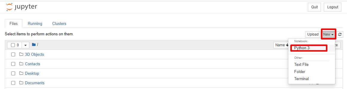 입력창에 jupyter notebook이라는 명령어를 수행하면, 주피터 노트북이 열립니다.