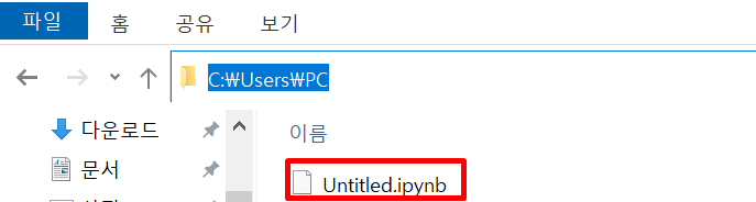 자! 그럼 작성된 파일은 어디에 있느냐? jupyter notebook이라는 명령어를 친 경로가 어디죠? 각자 실행한 경로가 다를 텐데요, 그 경로에 파일이 있습니다.
