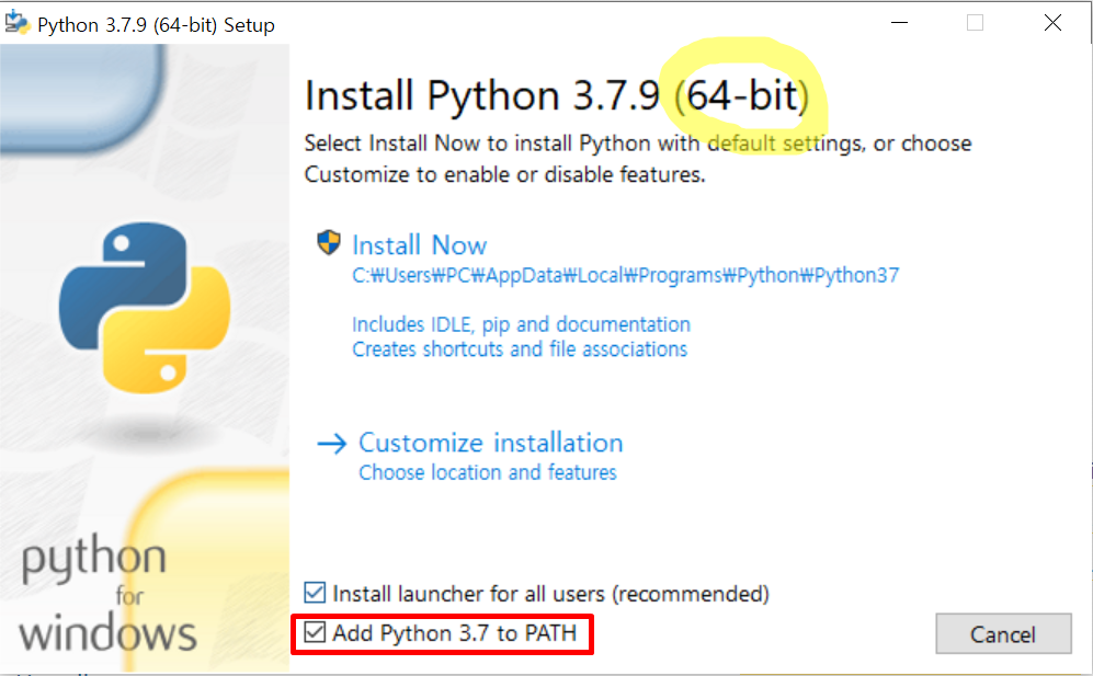 PATH를 추가할 수 있도록 체크박스에 체크를 합니다.