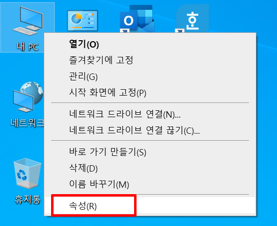 | 순서 : 바탕화면 > 내컴퓨터 (또는 내PC) > 속성 > 정보 보기 |