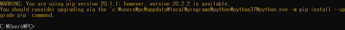 ※ 노란색 WARNING 글은 무시해도 됩니다.