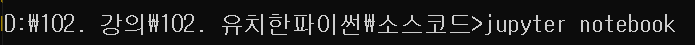 | 순서 : 원하는 폴더 > 오른쪽 마우스 (또는 shift + 오른쪽마우스) >여기서 명령 창 열기 > cmd 창 > jupyter notebook |