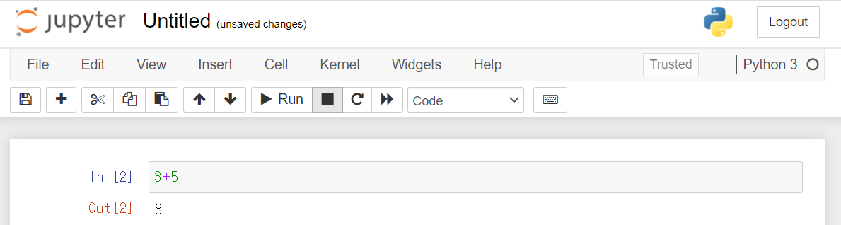긴 bar에 파이썬 문법을 작성한 후 shift와 enter키를 동시에 누르면 실행이 됩니다.