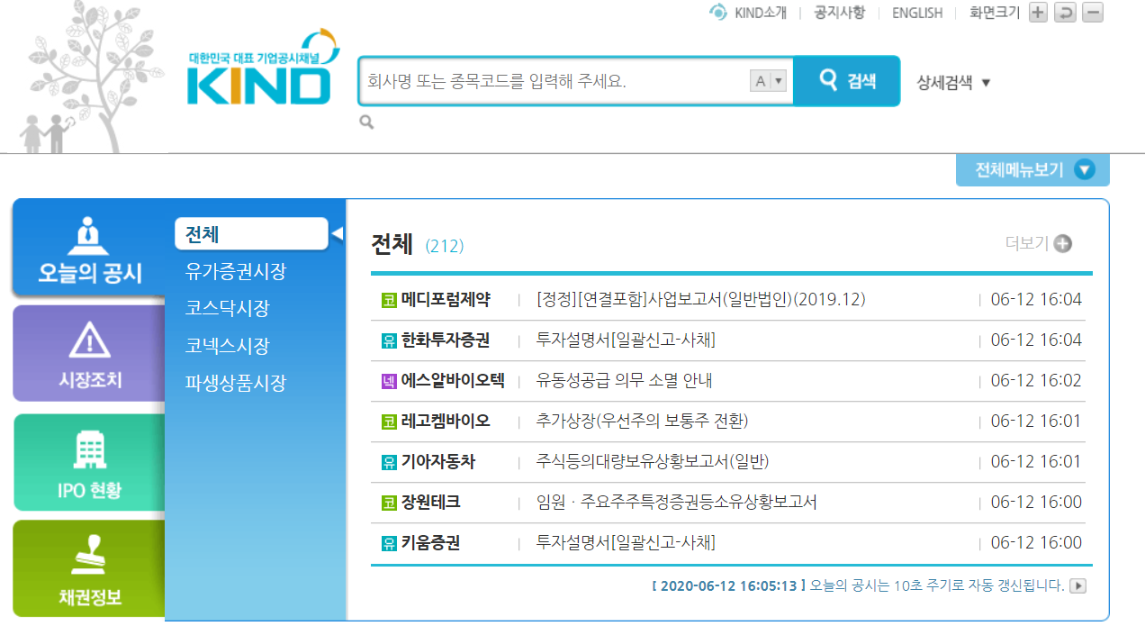 3000여 개나 되는 코드를 하나하나 찾는 건 귀찮은 일이니, 한국 거래소 (KRX)를 통해 가져오면 된됩니다.
