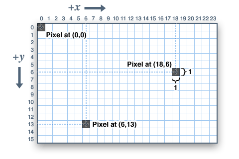 x=0, y=0 으로 그렸을 때와 비교해보세요. (0,0)의 좌표는 어떤가요? 왼쪽 제일 상단이죠? 좌표의 구성은 다음과 같습니다.