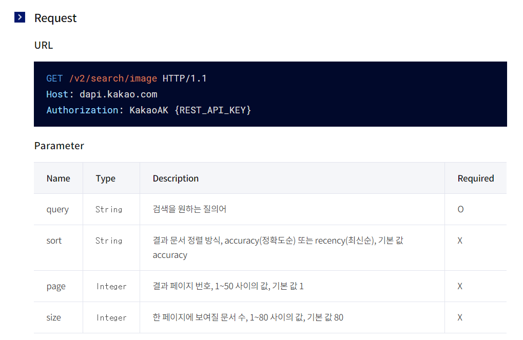 > 링크 : developers.kakao.com/docs/latest/ko/daum-search/dev-guide#search-image
