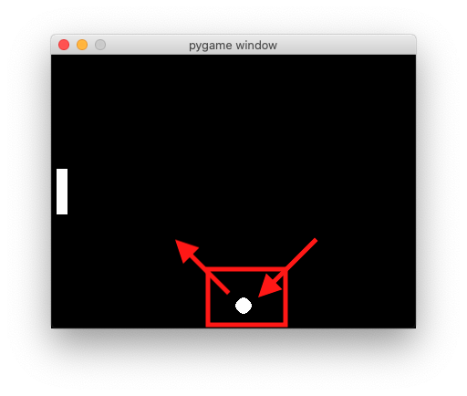 - circle_x < bar_dist_from_edge + bar_width : 공의 x 좌표가 바의 위치까지 왔을 때- circle_y >= bar1_y - circle_radius and circle_y <= bar1_y + bar_height + circle_radius : 공의 y 좌표가 bar의 y좌표 사이에 있을때-> 공을 bar 바로 앞에서, speed_x를 뒤집어 이동 방향을 우측으로 변경