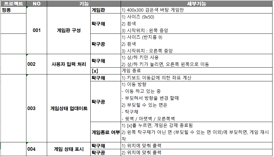 이번에 만들 게임은 핑퐁 게임입니다. 핑퐁 게임의 규칙은 다음과 같습니다.