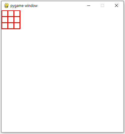 pygame.draw.line(screen, (255, 0, 0), (60, 0), (60, 60), 3)