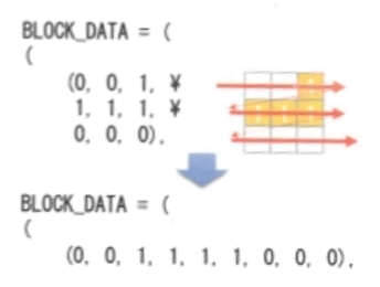 만약, BLOCK_DATA[0][0]이라면, 1차원의 (0, 0, 1, 1, 1, 1, 0, 0, 0) 이 된다.