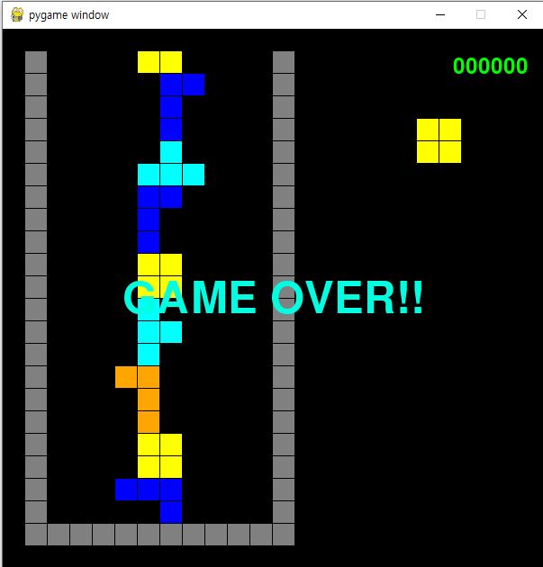 | GAME OVER | 300 x 300 | (0, 255, 225) |