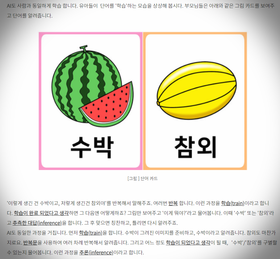 머신러닝에서의 지도학습은 인간의 학습방법과 유사하다.