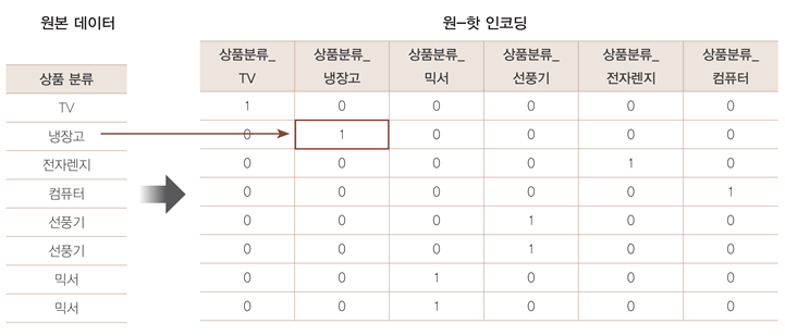 예를 들면, TV, 냉장고, 컴퓨터 (문자형) -> 1, 2, 3 (숫자형) 으로 말이다.