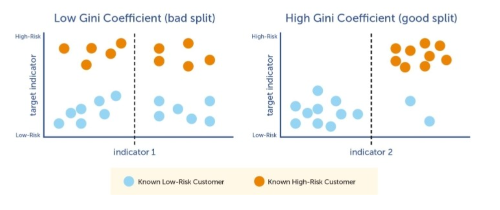 - 지니 계수가 낮은 속성을 기준으로 분할