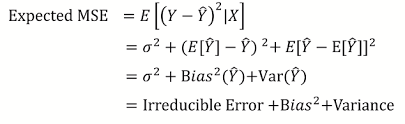 Expected MSE는 increducible error , bias, variance 로 구성되어 있다.