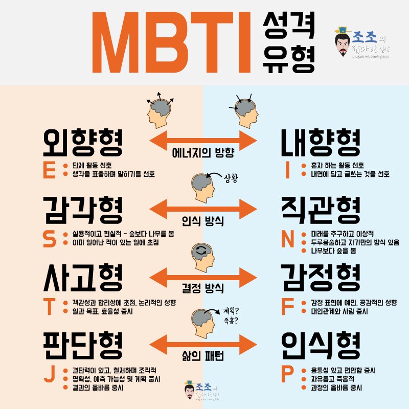 다수개의 질문을 통해 인간의 성격을 16가지로 군집을 지어 놓은 것이다.