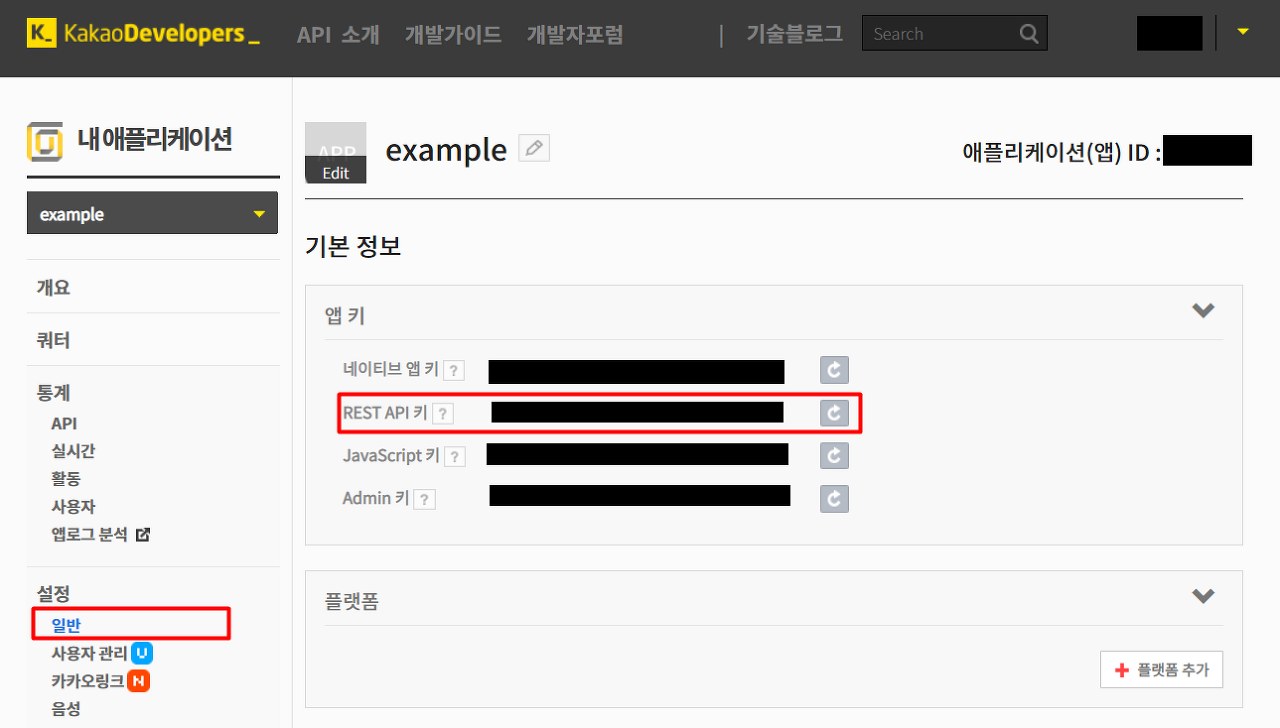사전준비 - 음성 인식 사용 여부 체크 - rest api key 찾기 |