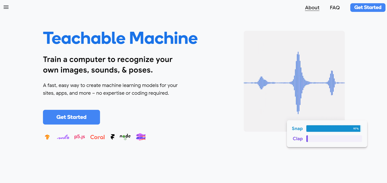 이런 전문가의 영역이라는 장벽을 넘어서 누구나 쉽게 웹 페이지를 통해서 machine learning을 이용할 수 있도록 만든 서비스가 바로 teachable machine 입니다.