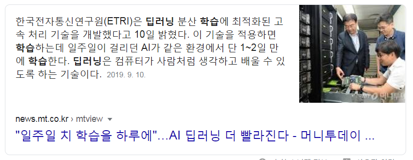 아래 기사를 보면 7일 걸리던 학습이 1~2일로 줄어 들었다고 한다. 단순히 생각해보면, 이마저도 길어보이지만 신문에 날 정도이니 엄청나게 획기적이라는 의미가 된다.