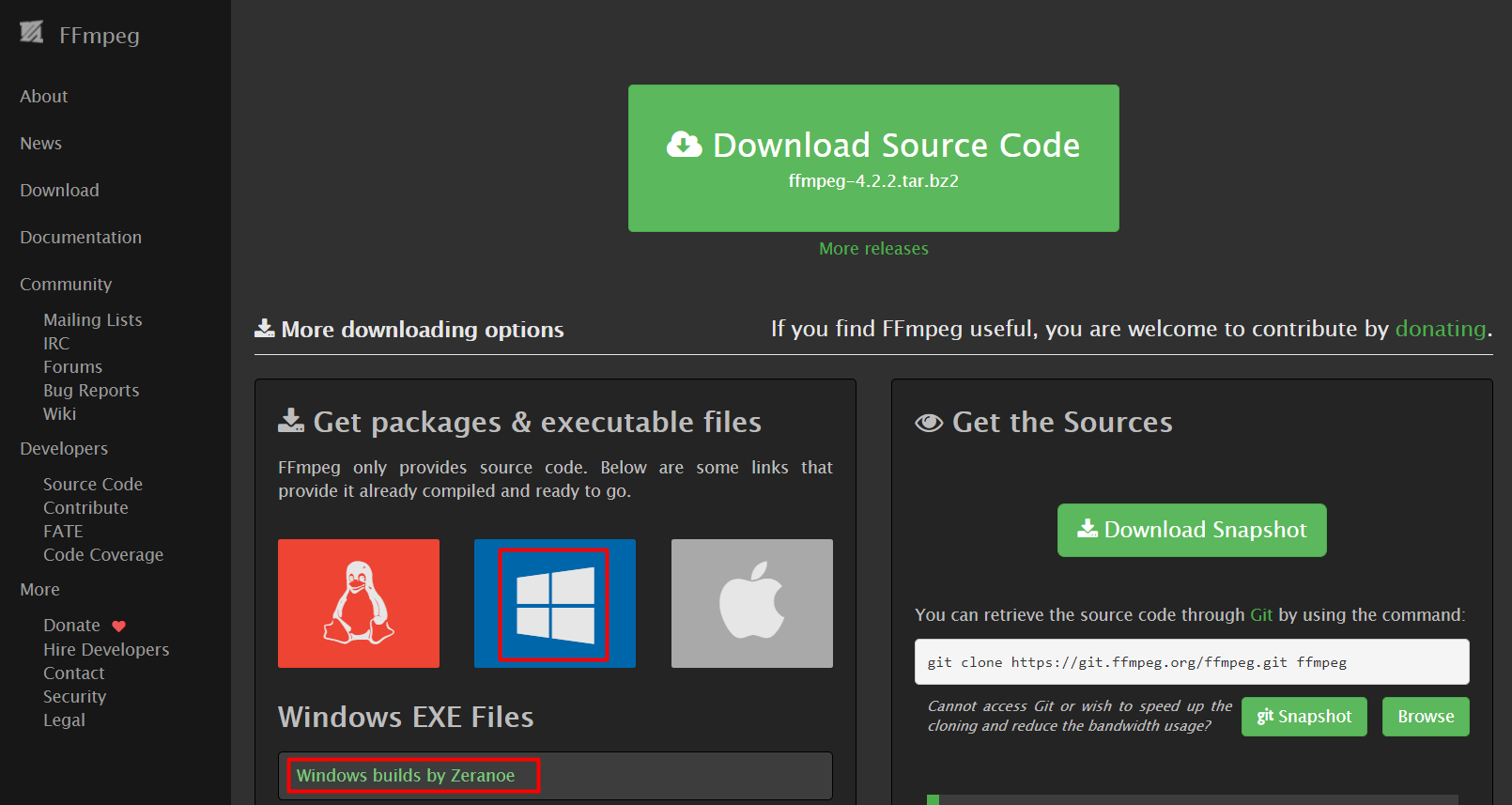 접속 url : https://www.ffmpeg.org/download.html#build-windows